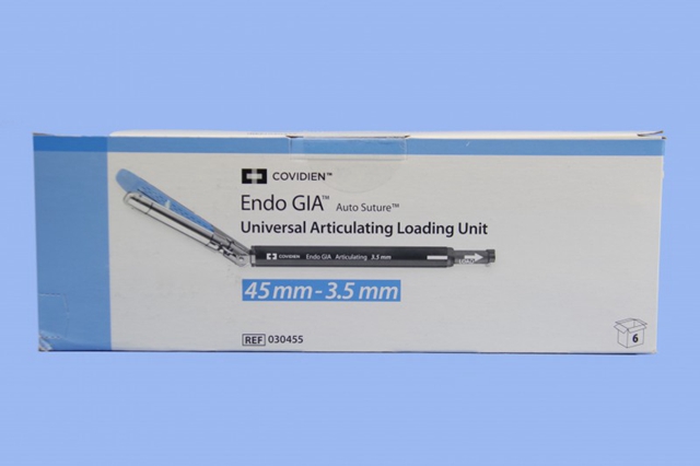 匣或ENDO GIAUNIVERSALROTICULATOR一次性可旋转钉匣。缝钉材料为钛,切刀材料为17-7不锈钢,钉砧材料为305不锈钢。一次性使用(其中吻合器在单台手术中可重复装钉、击发次数多达25次),环氧乙烷灭菌