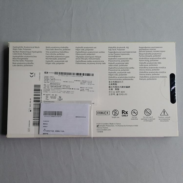 该产品适用于腹部腔壁的修复。矩形补片专门用于修复腹膜前区和肌肉前区或切口疝。预切补片适用于通过前路手术,使用无张力方法修复。 解剖补片主要用于通过腹腔镜或后路开式手术修复。